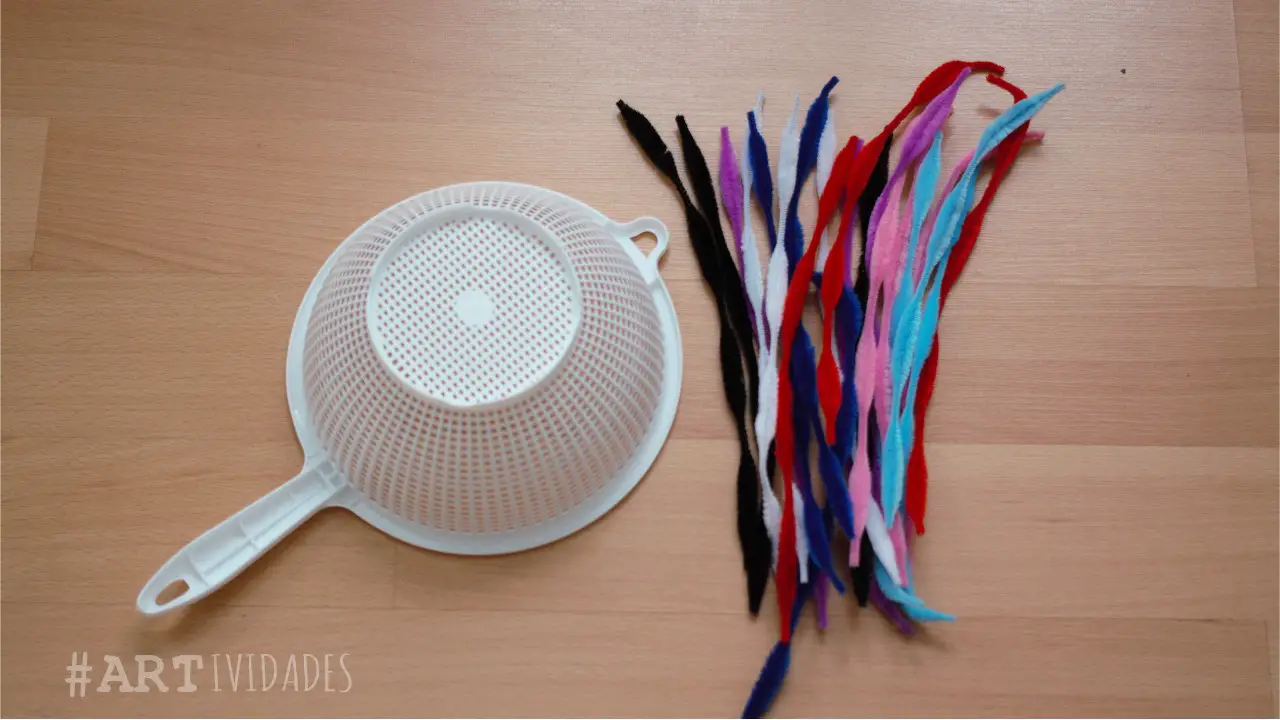 Actividad preescolar limpiapipas en colador