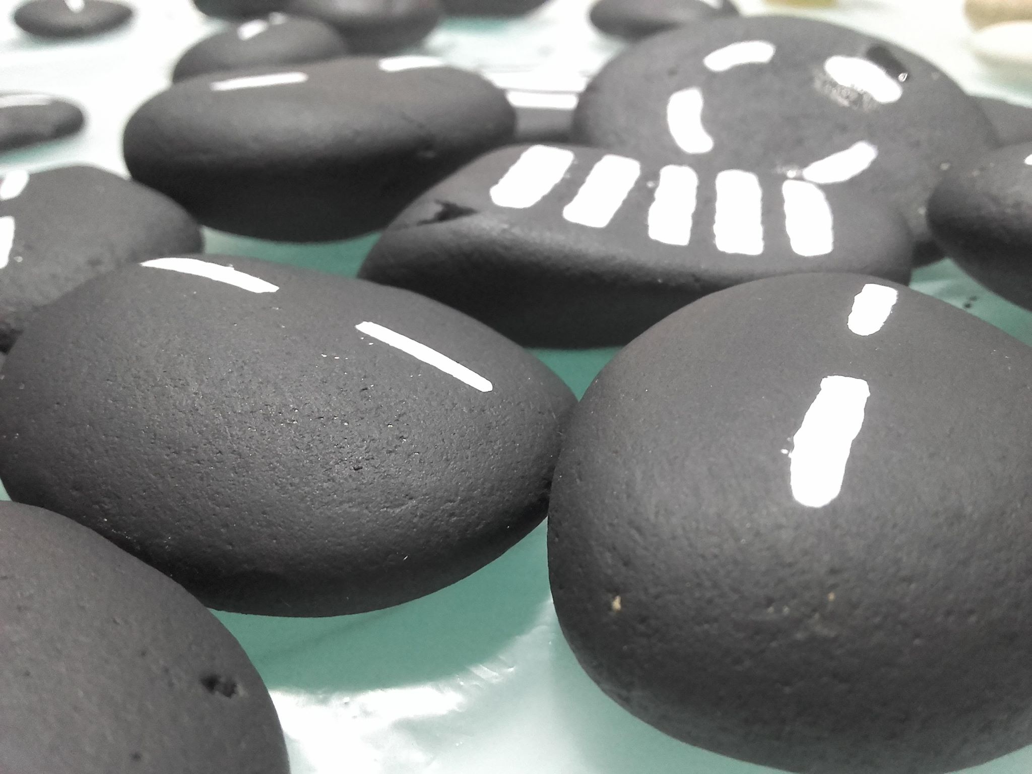Continúa pintando la piedra aplicando diferentes colores por todos sus lados, según la naturaleza del motivo de cada una de ellas.