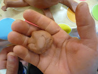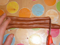 6.- Hacemos un churro con el barro y lo partimos en tres trozos iguales.