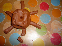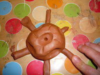13.- Hacemos una bolita de barro pequeña para la cabeza.
