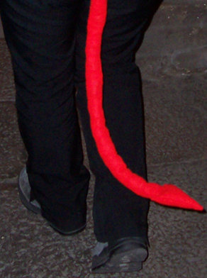 Puedes completar tu disfraz vistiéndote completamente de Negro. Añades una cola Roja como esta: