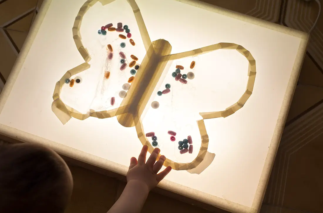 Podemos pegar nuestra mariposa sensorial sobre la caja de luz, o también en una ventana.