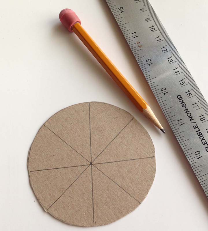 A continuación dibujas cuatro líneas para dividir el círculo en 8 partes iguales. No hará falta que hagas mediciones precisas precisas así que se puede hacer mas o menos a ojo.