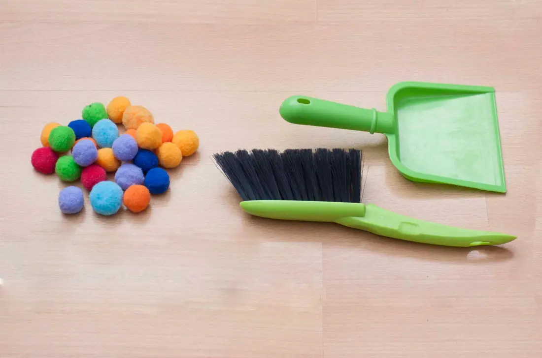 Recoger pompones con un recogedor