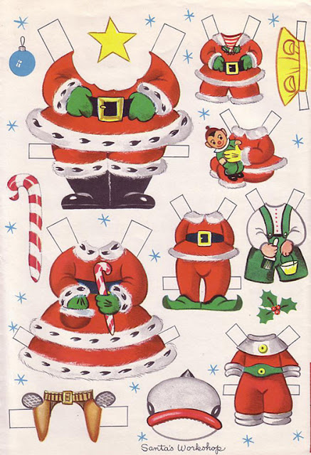 Muñecos recortables de la fábrica de juguetes de Papá noel para imprimir. Recorta y juega a con estos recortables navideños con toda la familia de Papá Noel.